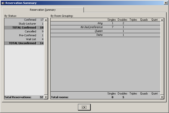Reservation Summary Form