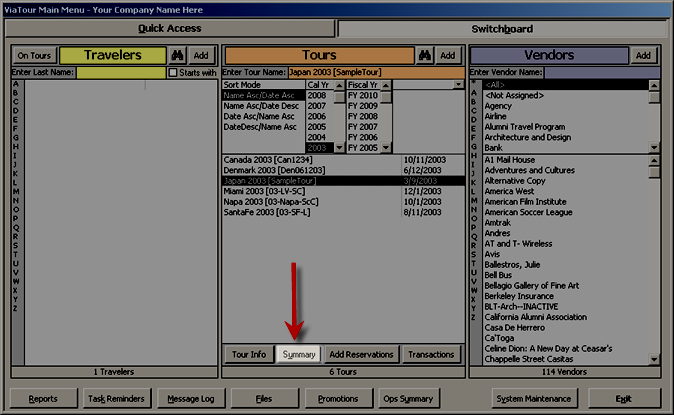 You can see a quick summary fby clicking on the summary botton. This button is availble on
