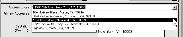 If you wish to use a different address from the traveler's address record, select it from the drop down list by clicking on the arrow, or by typing the address in.