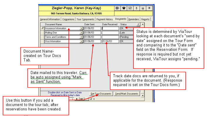 All the Tour Documents specified for the tour during tour setup appear on this tab for each traveler.