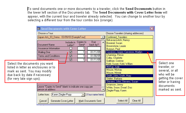 Assigning Tour Documents as sent for Travelers on a Tour