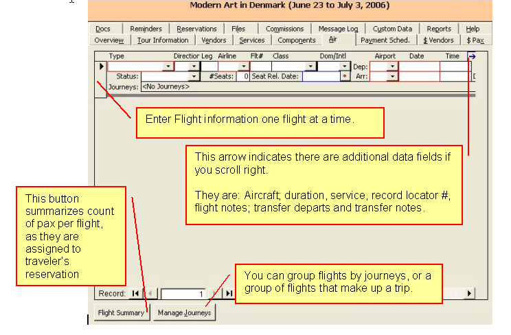 2. Open the Tour Form: Air Tab of the tour you want create group flights for.