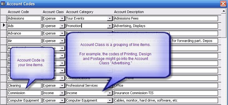 Adding and Editing Account Codes
