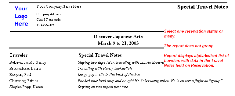 Special Traveler Notes (by Tour Reservation)