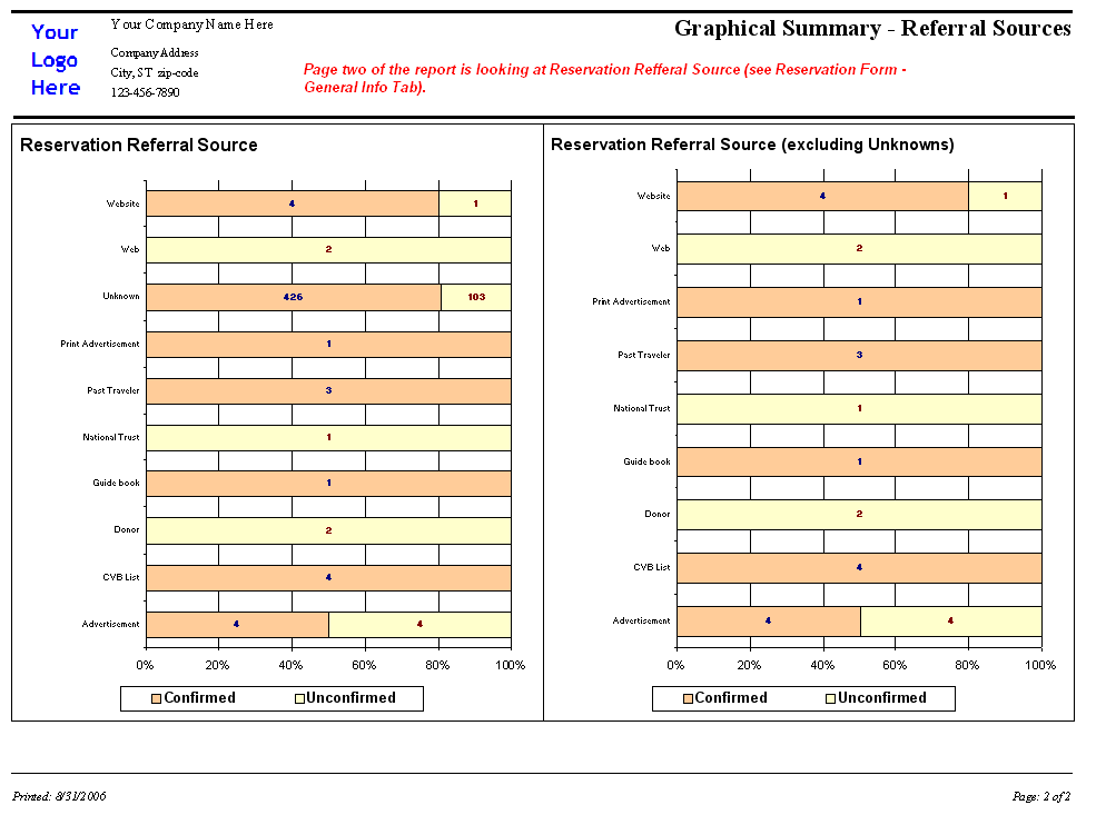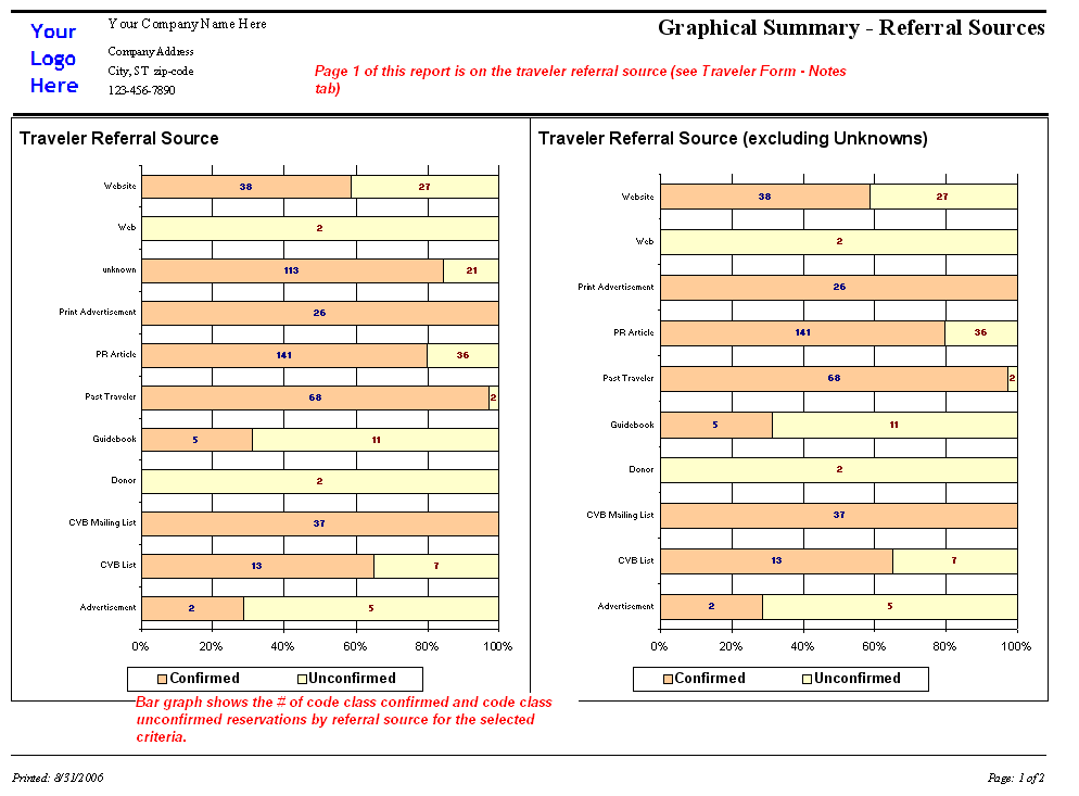 Page one of report is on traveler referral source and page two by reservation refferal source.
