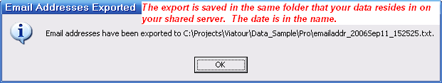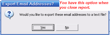 When you close the report you are given the option of exporting the emails to a text file.