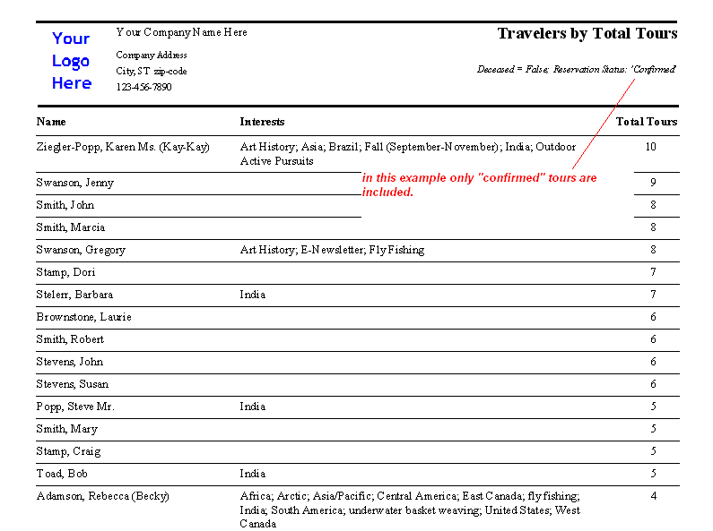 Travelers by Total Tours (in descending order).