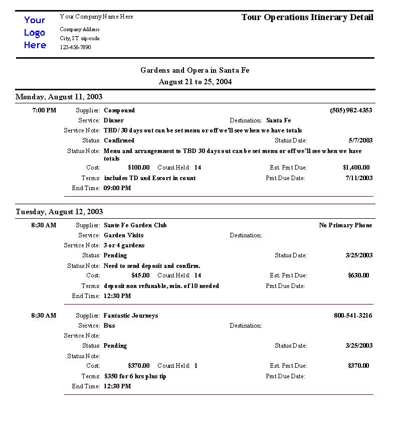 Operations Itinerary Detail Report