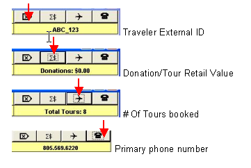Users may set the top of the form to always display by default either Traveler External ID, Donation or Tour Retail Value, # of Tours taken or Primary phone number.