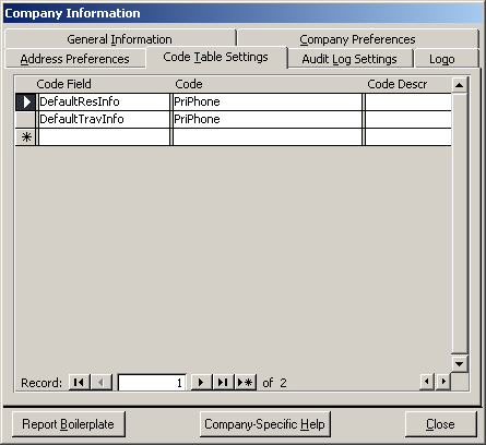 4) To set the Information that will display by default on the Traveler Form type into Code Field: DefaultTravInfo and enter into Code one of these values: ExtTravID, PriPhone, TotalValue,TotalTours (whatever you want to be your default)