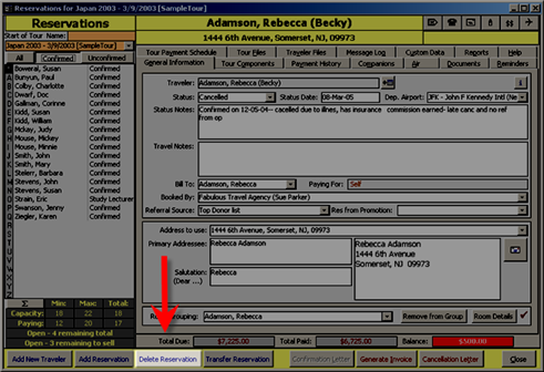 (NOTE: Reservations are considered a master record and so to delete it you must be assigned to a user group with this permission. If the button is grayed out, see your ViaTour system administrator for permission. )