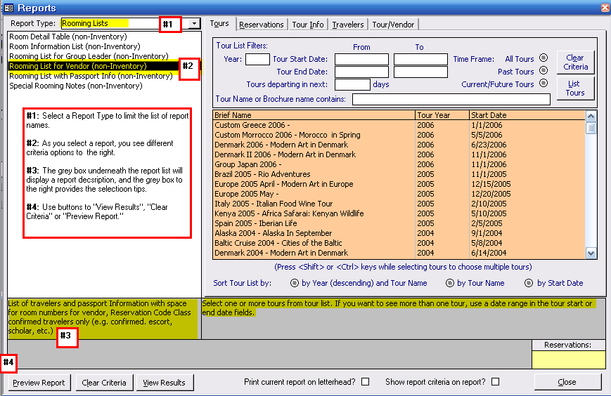 2. Clear Criteria: As you change reports the previously selected criteria stays as long as the next report uses the same selection set. If it uses a different selection set, the criteria clears. You can always click on the Clear criteria button to start over.