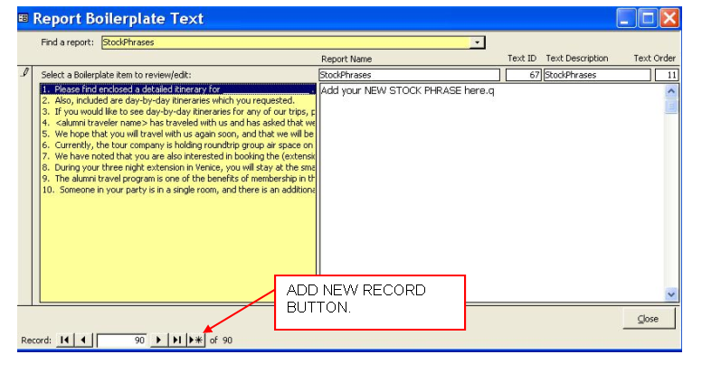 (Note: Be sure to click F9 to refresh the form, then the new stock phrases will appear.)