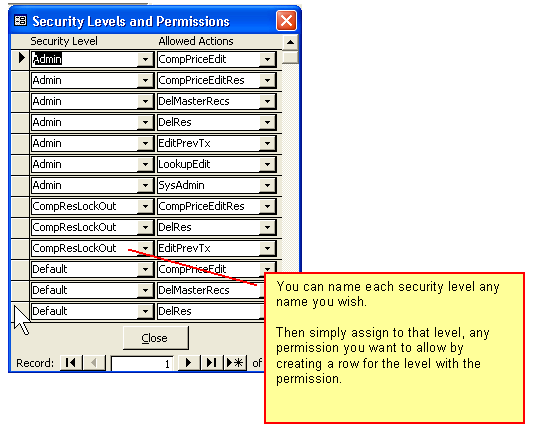 5. To Delete an allowed action from a group, click on the record and hit your delete key.