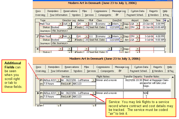 2. Open the Tour Form: Air Tab of the tour you want create group flights for.