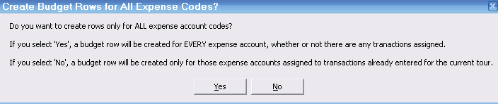 Just as with the revenue side, the expense side has an actual column. This column shows a sum all transactions to date for that account code. (Note: any transaction assigned to the tour, past present or future and to this account, is included.)