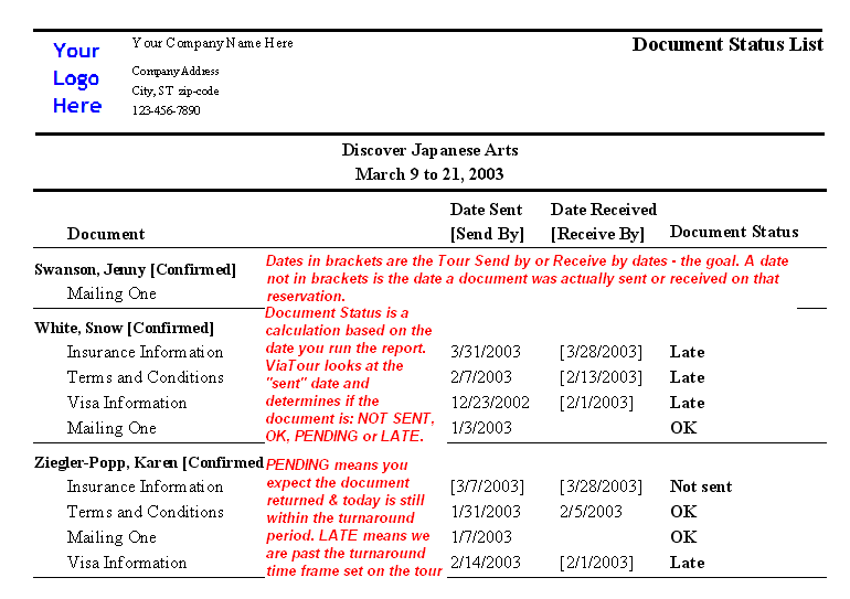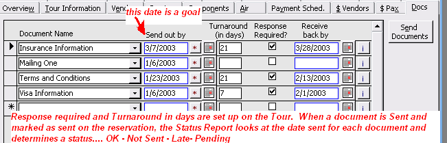 Sample view of the TOUR FORM - DOCUMENTS TAB