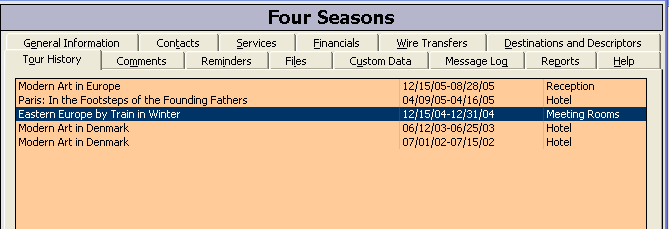 You can double-click on the Tour name to access that tour's Tour Information Form.