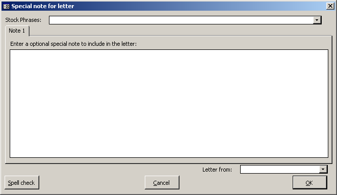 8. If you want to be able to add optional notes, stock phrases or add "Letter From" whenever you run the report, click the "Show Notes Form" check box.