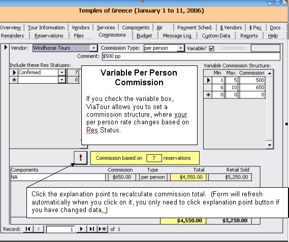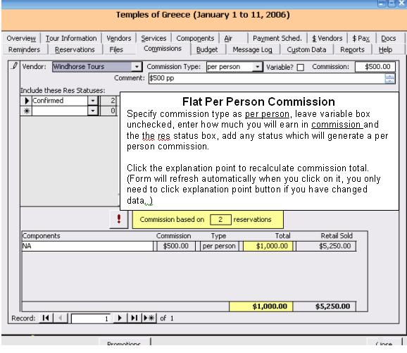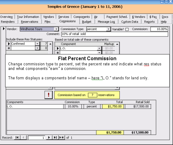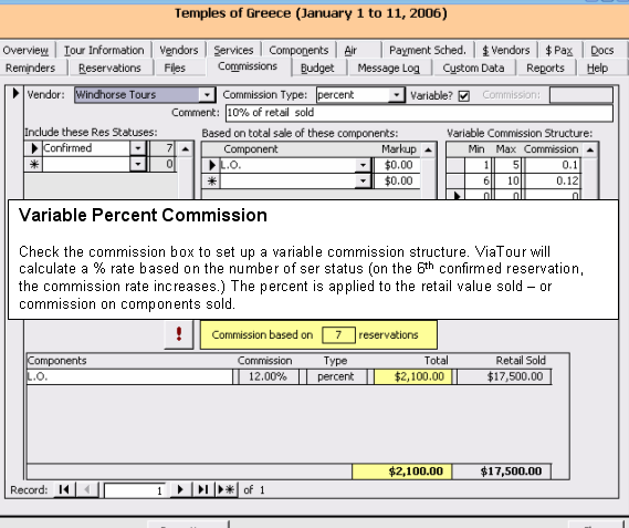Below examples of flat per person, variable per person, flat percent and variable percent commission structures: