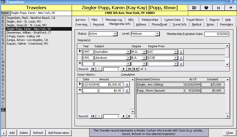 Membership Status and Level are user defined look-up lists. You may add new value from the Traveler form or see Adding, Editing and Deleting Look Up Codes.